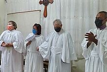 Für die noch junge Brüdergemeine auf Kuba, die im Status einer Missionsprovinz der weltweiten Brüder-Unität arbeitet, war der 24. April 2022 ein ganz besonderer Tag. Im Gottesdienst in Havanna fanden an diesem Tage gleich vier Ordinationen statt, die Bischof Armando Rogelio Rusindo in Gegenwart vieler Gemeindeglieder, Gäste und Angehörigen der Ordinanden vornahm. Zunächst wurde Ezequiel Hernandez zu einem Diakonus (Pfarrer) ordiniert. Anschließend empfingen die Pfarrerin Tania Sánchez Fonseca und die beiden Pfarrer Obed Martinez und Alay Martinez die Ordination zu einer Presbyterin bzw. zu einem Presbyter. Die Brüdergemeine praktiziert seit alters die altkirchliche dreifache Ordination: Diakonus (Pfarrer), Presbyter, Bischof. In einem Kurzbericht heißt es: »Die Brüdergemeine auf Kuba sieht in diesen Ordinationen Meilensteine bei ihrem weiteren Wachstum und eine Stärkung ihrer Führung«. Bilder hier. |