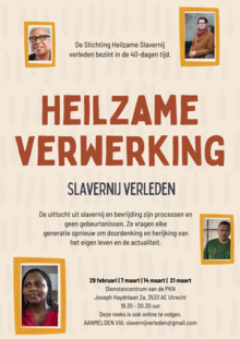 Die Passionszeit 2024 möchten Christinnen und Christen in den Niederlanden nutzen, um über die verheerenden Auswirkungen der Verstrickung der Kirchen in das System der Sklaverei nachzudenken. Die noch bis zum 29. März 2024 währende Fastenzeit ist traditionell eine Zeit der Selbstreflexion, der Besinnung und des Gebetes. Jede Generation ist aufgefordert, ihr eigenes Leben zu überdenken und kritisch zu bewerten. Daher ruft der Arbeitskreis zur heilsamen Aufarbeitung der Sklaverei-Vergangenheit in den Niederlanden in diesem Jahr dazu auf, in der Fastenzeit über tief verwurzelte Muster aus der Vergangenheit der Sklaverei und auch deren Auswirkungen bis in die Gegenwart nachzudenken. Es werden vier Veranstaltungen auch mit Webinaren angeboten: 29. Februar, 7. März, 14. März und 21. März 2024 jeweils von 19.30 bis 20.30 Uhr. Zu übergreifenden Themen und Ländern (Curaçao; Niederländisch-Ostindien), die an den vier Abenden verhandelt werden, sowie zum Ort der Veranstaltung siehe hier. |