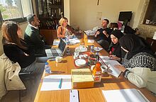 Das Förderzentrum der weltweiten Brüder-Unität auf dem Sternberg (Palästina, Westbank) empfing am 29. Februar 2024 eine Delegation der Palestine Association for Children’s Encouragement of Sports, um Möglichkeiten der engeren Zusammenarbeit zwischen beiden Organisationen auszuloten und um ggf. auch formell eine Partnerschaft zu begründen. Seit Jahrzehnten ist das Förderzentrum Sternberg führend in Palästina bezüglich der Nutzung des Sports als Förderinstrument. Foto hier. Schon am Tage zuvor unterzeichnete Ranya Karam, die Leiterin des Sternberg, eine Kooperationsvereinbarung mit offiziellen Vertretungspersonen von sechs Kommunen in der Umgebung: Liqya, Qabiya, Kharbatha Al-Misbah, Deïr Abu Mish'al, Ni'lin und Shuqba. Die Vereinbarung ist das Ergebnis des kürzlich abgeschlossenen, von der deutschen Gesellschaft für internationale Zusammenarbeit (GiZ) geförderten Projektes Förderung der Inklusion durch ein gutes kommunales Miteinander. Im Rahmen dieses Projektes hatten Mitarbeitende vom Sternberg im Januar und Februar 2024 ausführliche Besuche in zehn Kommunen gemacht und dabei die Angebote des Förderzentrums vorgestellt. Einige Fotos hier. |