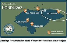 Vor gut einem Jahr – am 20. April 2023 – startete mit einem Erkundungsbesuch an der honduranischen La Mosquitia das Projekt Segensstrom (Blessings Flow), ein gemeinsames Projekt der Brüdergemeine in Nordamerika und in Honduras (Unitätsprovinz und Missionsprovinz) zur besseren Versorgung der indigenen Bevölkerung mit Trinkwasser. Zunächst konnte den Menschen in Tumtum Tara sauberes Wasser zur Verfügung gestellt werden. Inzwischen wurden vier weitere Gemeinden in dieses Projekt einbezogen, so dass jetzt etwa 1.000 Familien über sauberes Wasser und über Medikamente gegen Magen-Darm-Krankheiten verfügen. In allen fünf Gemeinden ist die Zahl der durch verunreinigtes Wasser übertragenen Krankheit deutlich zurückgegangen und es gibt weniger verpasste Schul- und Arbeitstage. Die Brüdergemeine in Nordamerika hat binnen Jahresfrist 150.000 Dollar zu diesem Projekt beigetragen. Ein 200-Sekunden-Film vermittelt einen Überblick über Verlauf und Erfolg des Projektes. Siehe hier. |