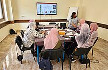 Das Projekt Förderung inklusiver Gemeinschaften durch ein gutes kommunales Miteinander des Förderzentrums der weltweiten Brüder-Unität auf dem Sternberg bei Ramallah (Palästina/Westbank) tritt jetzt in eine neue Phase. Das Leitungsteam des Zentrums bot vom 29. April bis 2. Mai 2024 einigen Frauen aus benachbarten Gebietskörperschaften erstmals eine Weiterbildung zur Mitarbeiterin für Rehabilitation an. Bilder hier. Bei dem viertägigen Miteinander der Frauen ging es um die Gewinnung von Kompetenzen im Blick auf die Rechte von Menschen mit Behinderungen, d. h. um den Umgang mit verschiedenen gesetzlichen Bestimmungen und kommunalen Richtlinien sowie um die konkrete Durchführung von Inklusions-Maßnahmen. Die Weiterbildung soll kommunalen Mitarbeitenden in Betunya, Beit Loqya, Naalin, Kharbatha Mesbah, Dir Abu Mashal und Qabia zugutekommen. Das Projekt wird weiter gefördert von der deutschen Gesellschaft für Internationale Zusammenarbeit (GIZ). |