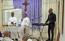 Die Brüdergemeine auf Kuba, die im Status einer Missionsprovinz der weltweiten Brüder-Unität arbeitet, berichtete am 6. Januar 2025 in einem Facebook-Post: "Die Gemeinde Belén in Havanna, auf deren Grundstück sich das nationale Hauptquartier der Brüdergemeine auf Kuba befindet, feierte ihren ersten Lobpreis-Gottesdienst im Jahre 2025 voller Freude und Dankbarkeit. Manchmal erfüllt von Lachen, manchmal erfüllt vom Gefühl der Zerbrochenheit hörten wir kraftvolle Zeugnisse von der Treue Gottes, der in alten Jahr stets an unserer Seite ging. Wir lobten Gott und wir beteten ihn an als den König aller Könige und den Herrn aller Herren. Die Gemeinde empfing das heilige Abendmahl von ihrem Bischof Armando Rusindo und von ihrer Pfarrerin Tania Sánchez." Fünf Bilder vom Gottesdienst hier. Einen zweiseitigen Rundbrief zum Jahreswechsel 2024/2025 der Kuba-Stiftung der Brüdergemeine in Nordamerika ("Armando Rusindo Mission Foundation") gibt es hier. |