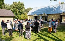 Am Sonntag, dem 14. September 2025, dem 99. Jahresfest des Betsaales der Brüdergemeine in Nabala, Estland (20 Kilometer südlich von Tallinn), sollen sie abgeschlossen sein: die Außenarbeiten rings um den hölzernen Saal. Zum Ende des Sommers laufen die Aktivitäten auf Hochtouren. Erneuert wird derzeit der Zaun, der das Grundstück umgibt, und die Zufahrt. Dann muss noch das Fundament des 1936 errichteten Anbaus verstärkt und Wandstücke müssen neu verputzt werden. Die Gemeindeglieder danken der politische Gemeinde Kiili für die zugesagte finanzielle Unterstützung! Sie danken auch den Spenderinnen und Spendern und denen, die bei den Baumaßnahmen mitgeholfen haben. Der Betsaal in Nabala wurde auf dem Grundstück des Bauernhofs Miku errichtet. Der damalige Besitzer des Hofes, Juhan Härma, regte den Neubau an, weil ein älterer Betsaal, über den nichts bekannt ist, baufällig geworden war. Bilder hier. |