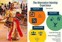 As a small but global church, the Moravian Church is extraordinarily colourful. The term colourful is often used in a figurative sense: diverse in terms of language, culture, history and theology. Sometimes, however, the Moravian Church is also a colourful church in a very literal sense, such as recently in Leichester (UK), when a coloured sister celebrated the Independence Day of her homeland Antigua and Barbuda with her festive and colourful service dress. See here. The sister's dress is reminiscent of the flag of Antigua and Barbuda, designed by Reginald Samuel in 1966, a few years before independence from Great Britain in 1981. see here. The seven rays of the sun symbolise the beginning of a new era. Red symbolises the blood from the time of slavery and the fiery temeprament of mankind. Blue symbolises everlasting hope. Black symbolises the soil and the omnipresent African heritage. The triad of gold, blue and white symbolises the main attractions of Antigua: sun, sea and sand. Finally, the V symbolises victory. The theme of the Leichester Moravian Church service was: "Power of Art - Beauty of Music - Serenity of Prayer". |
