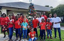 For the children at the Marcel-Ria Samuel School in Paramaribo-Beekhuizen, Advent caroling is already a small tradition. Last year, some of the children came to the deaconess house in Paramaribo with a hosanna (short video hier), was paid a visit to the 65 senior citizens in the Catholic Fatima Oord in the second week of Advent 2023.Small gifts and food parcels were also handed over during this visit. Three videos and two pictures here. The elderly people and the nursing staff at the facility were delighted with this change of pace, as there is often little time for meaningful leisure activities in everyday life. Some of the senior citizens were able to sing along to the songs sung by the children. Due to the ongoing economic crisis in Suriname, the country's retirement and nursing homes are generally poorly equipped. |