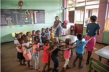 In its newsletter, den ZZg Nieuws (no. 4-2023; page 4), the mission organisation of the Moravian Church in the Netherlands (ZZg) presents two of its Christmas projects this year. It says: "58 children are being guided towards learning in the Moravian preschools in the Marowijne region of Suriname. The children love going there. The teachers are nice, they sing beautiful songs, they read aloud, they play together. All of this is done in Dutch. Although this is the national and official language, Dutch is not necessarily spoken by young children at home. Other languages are spoken there. So that children don't have to start learning a new language in primary school, the Moravian Church endeavours to stimulate Dutch in all activities in the pre-schools. However, this requires support." Another ZZg Christmas project is the financial support of a Christian youth party at the end of 2023 at the Moravian youth centre in Paramaribo. |